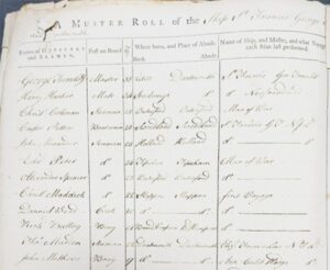 Image of a merchant ship’s Muster Roll 1770-1775, National Archives, (catalogue reference: BT 98/3)